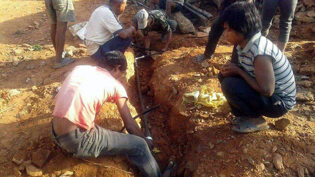 Les premiers robinets ont été installés devant les maisons du village de Maskichhap au Népal. Mené tambour battant le chantier d'adduction d'eau se concrétise pour les habitants: l'eau coule devant chez eux!