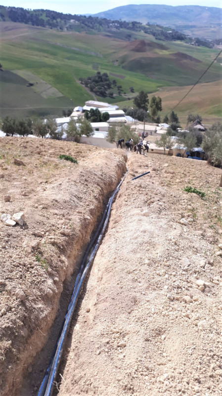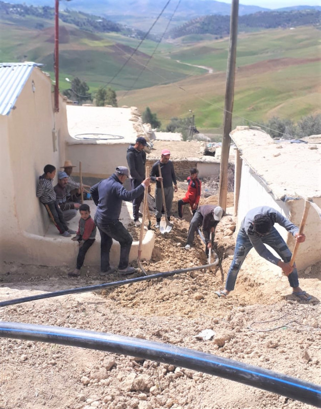 Après le douar de Ouled Abdellah dans la Commune Rurale de Ras El Oued au Maroc, la distribution de l'eau progresse en direction des douars situés à proximité. La première tranche de travaux menés en 2021 a permis le raccordement d'une cinquantaine de foyers dans cette zone rurale, la prolongation du réseau entreprise cette année va concrétiser la distribution aux habitants des autres douars: Binan, Labiar et Dhar Labiad. C'est ainsi que près de 800 personnes vont être raccordées à ce réseau alimenté par deux puits situés à la périphérie de l'oued Elben. Objectif final: un réseau desservi par deux puits, deux pompages solaires, trois réservoirs et 10 000 ml de conduites posées avec l'appui permanent de l'association locale Chtata et la participation active des habitants des douars.