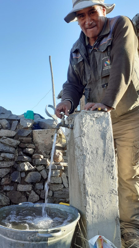 La communauté des villageois d'AÑUFANI en Bolivie est parvenue à la fin des travaux permettant d'apporter l'eau dans le village: après le captage de la source, la conduite a été posée en direction du réservoir et l'eau est distribuée devant chaque maison.