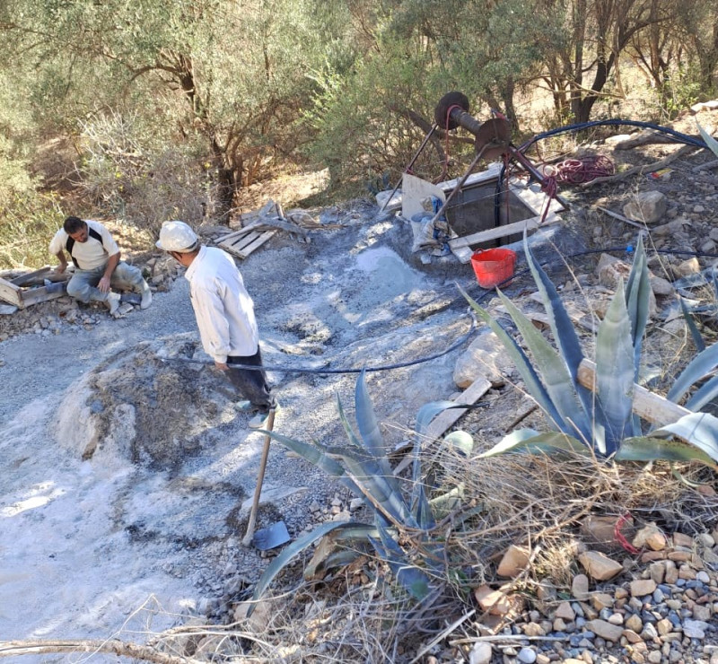 Dans la province de Berkane les travaux envisagés pour le puits d'Ouled Bouabdsayed sont enfin mis en oeuvre en cette fin d'année. Outre le cuvelage à réaliser, il reste à approfondir ce puits pour assurer un meilleur approvisionnement pour ce réseau entré en fonction il y a plus d'un an déjà. Une extension vers l'école du douar et deux foyers supplémentaires est également en cours de réalisation, travaux toujours suivis par nos partenaires locaux l'association des Amis d'Aklim.