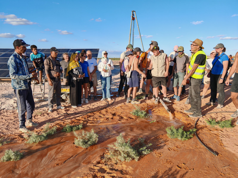 Un nouveau chantier qui s'achève pour les équipes d'Aleaugemeau au Maroc: une semaine consacrée à la pose de conduites d'eau, à la création d'une structure pour la mise en place des panneaux solaires et au montage de la pompe dans le forage. La satisfaction de voir l'eau jaillir a couronné cette fin de journée. L'association partenaire Al Nojood va suivre la progression des travaux restant à effectuer, avec l'appui des services techniques de la commune de Tissaf, de l'entreprise M.E.D. et des habitants des douars concernés