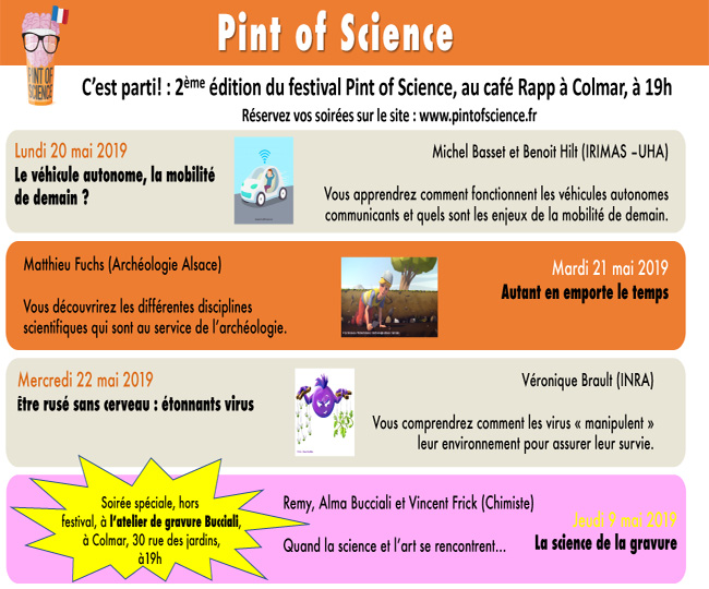 PINT OF SCIENCE, le festival de vulgarisation scientifique, sera de retour pour sa deuxième édition à Colmar du 20 au 21 mai prochain, au Café Rapp à 19h.