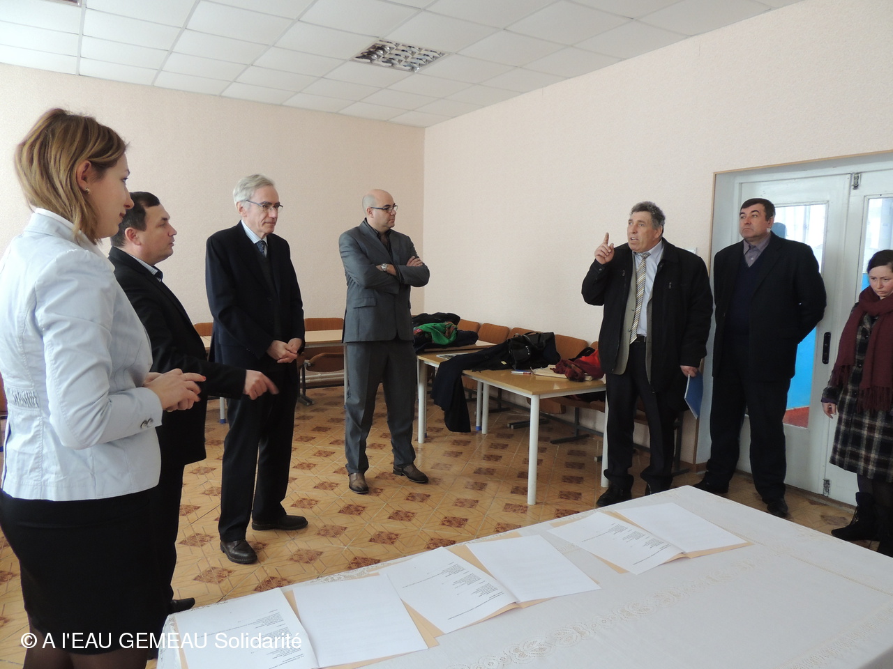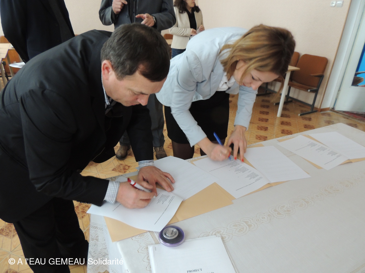 Préambule aux travaux envisagés à Horodiste: la signature de la convention de partenariat, liant la commune d'Horodiste à Aleaugemeau Solidarité, et à Ventul de Est pour le suivi des travaux sur place.