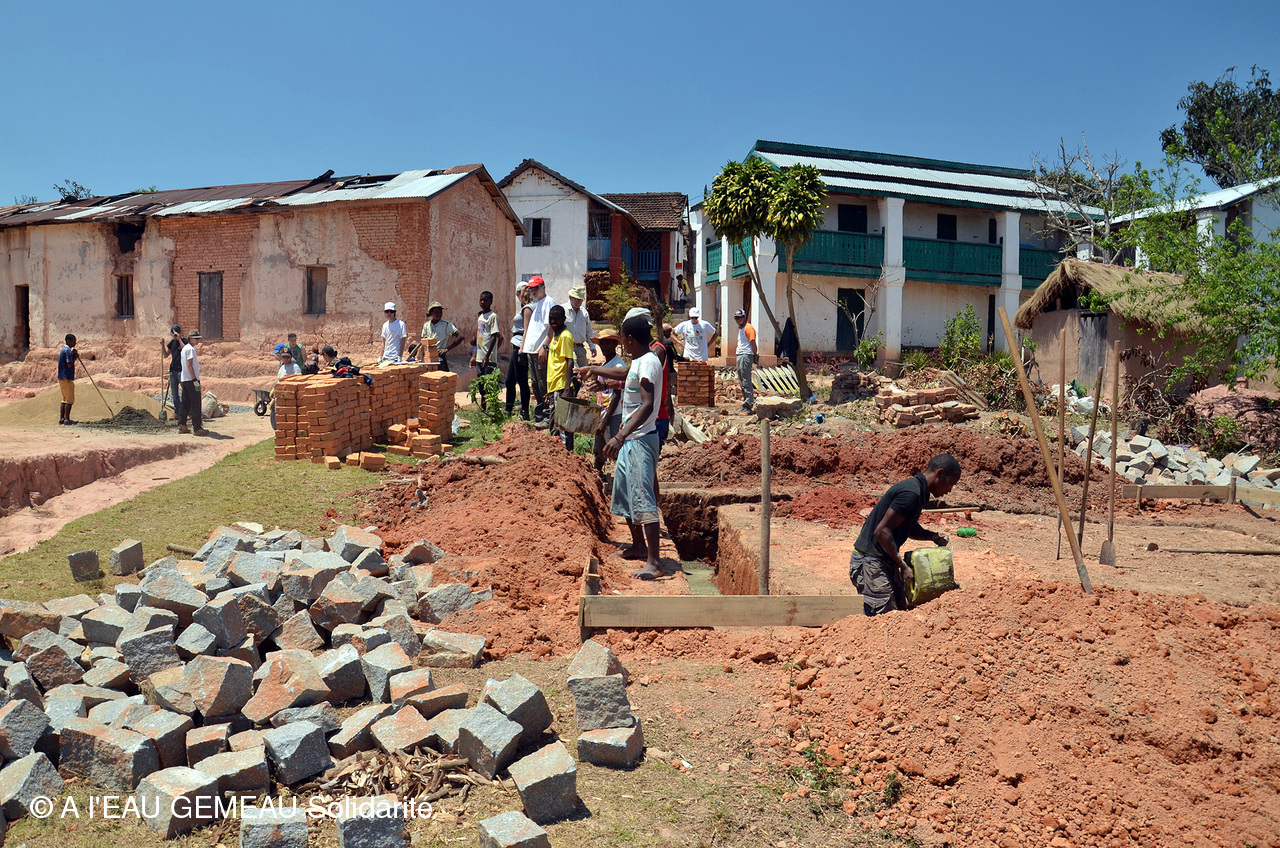 Les chantiers 2015 à Madagascar ont mobilisé les équipes françaises aux côtés des habitants d'Ambohimahamasina pour la mise en oeuvre des Bornes Fontaines et la création du premier Lavoir.