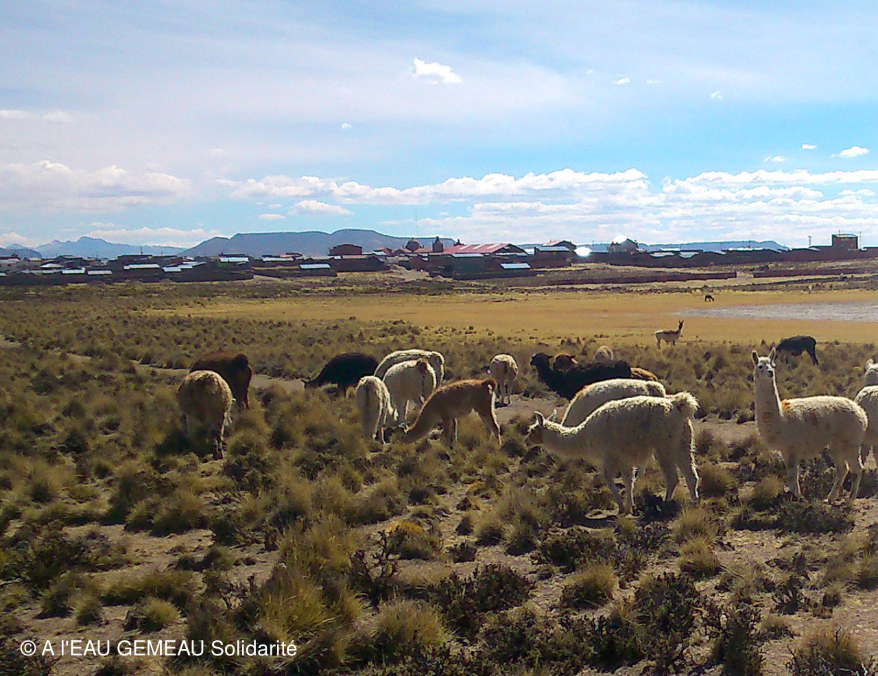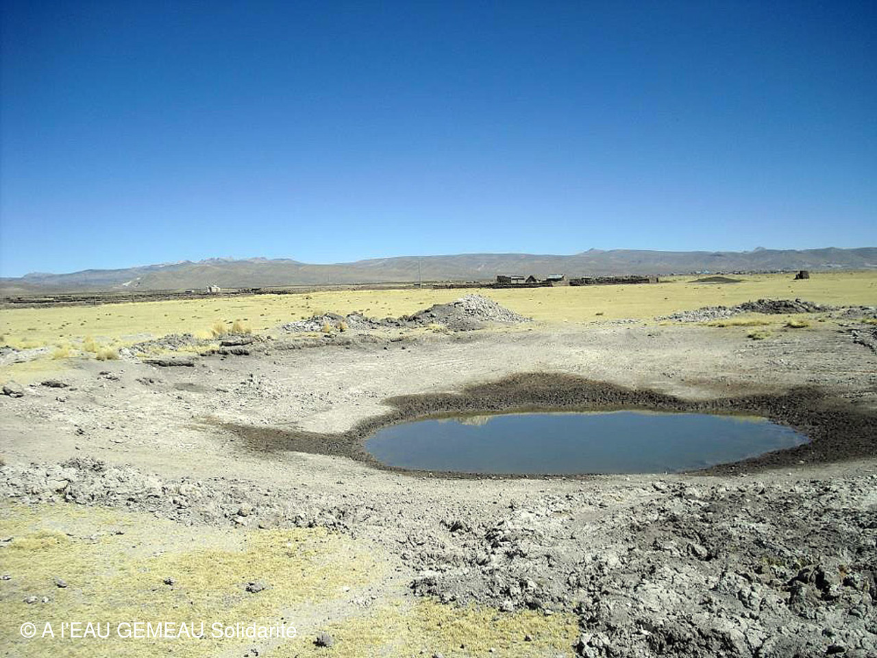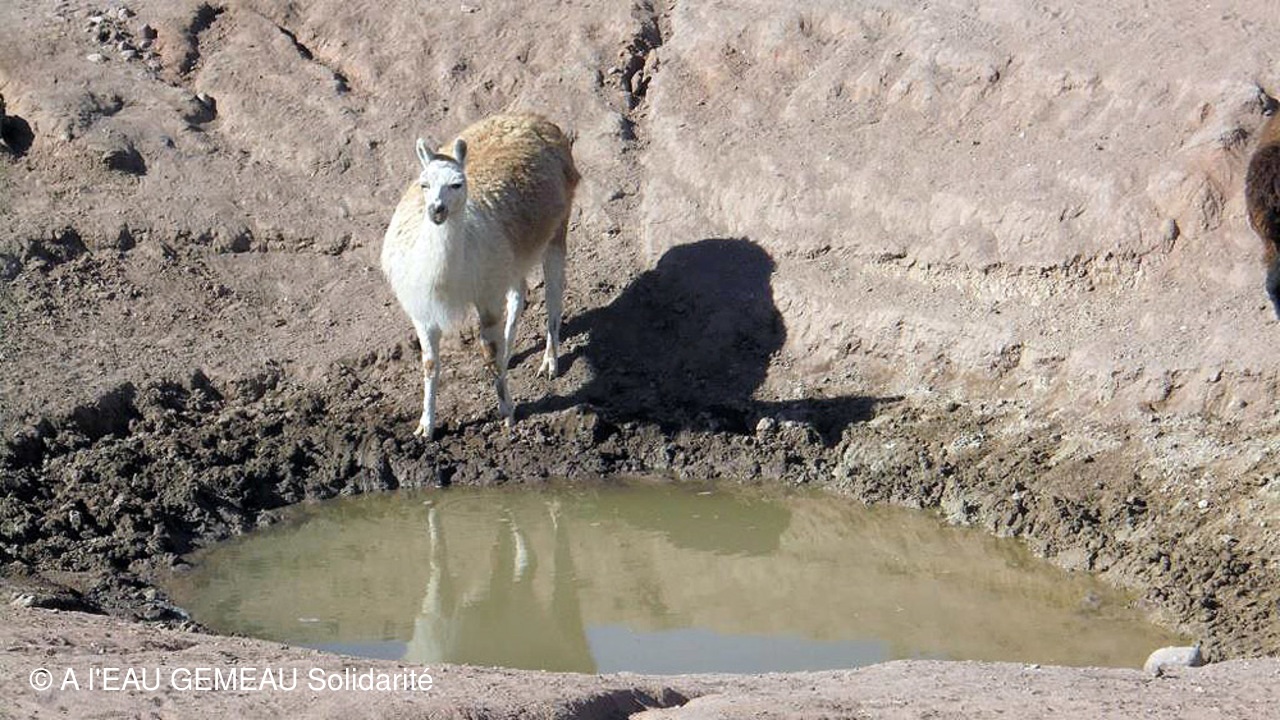 -Les dernières photos prises en saison sèche: les points d'eau permettant aux troupeaux d'alpagas de s'abreuver, des lavandières autour d'un mince filet d'eau, un passage à gué...à sec, l'état de sécheresse de la terre, un troupeau de vigognes sur l'Altiplano...