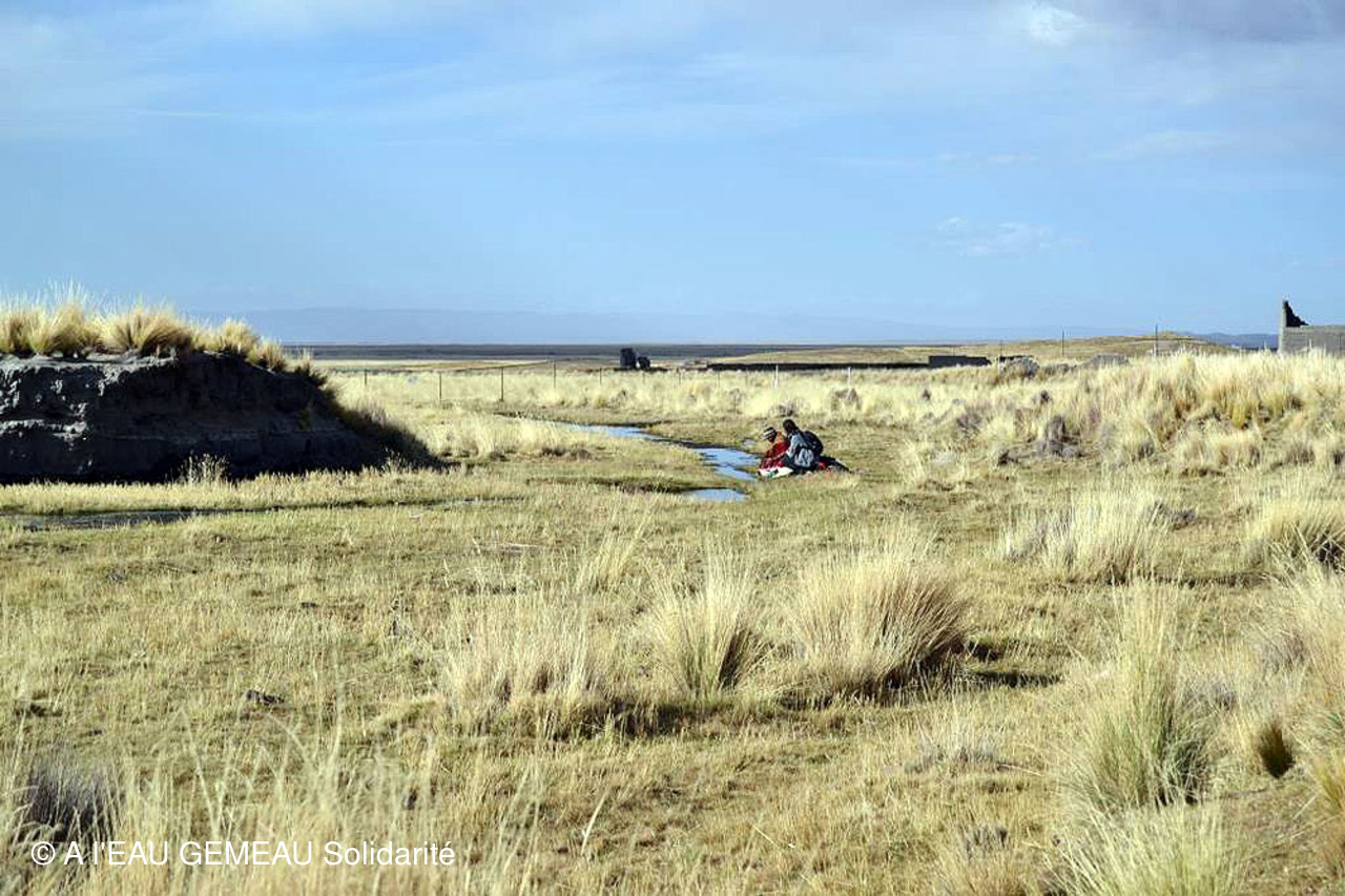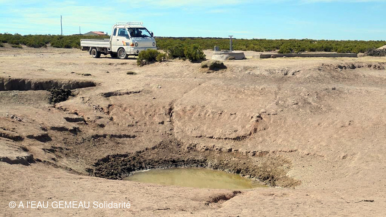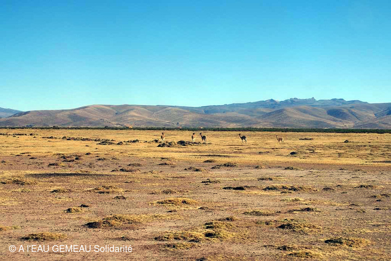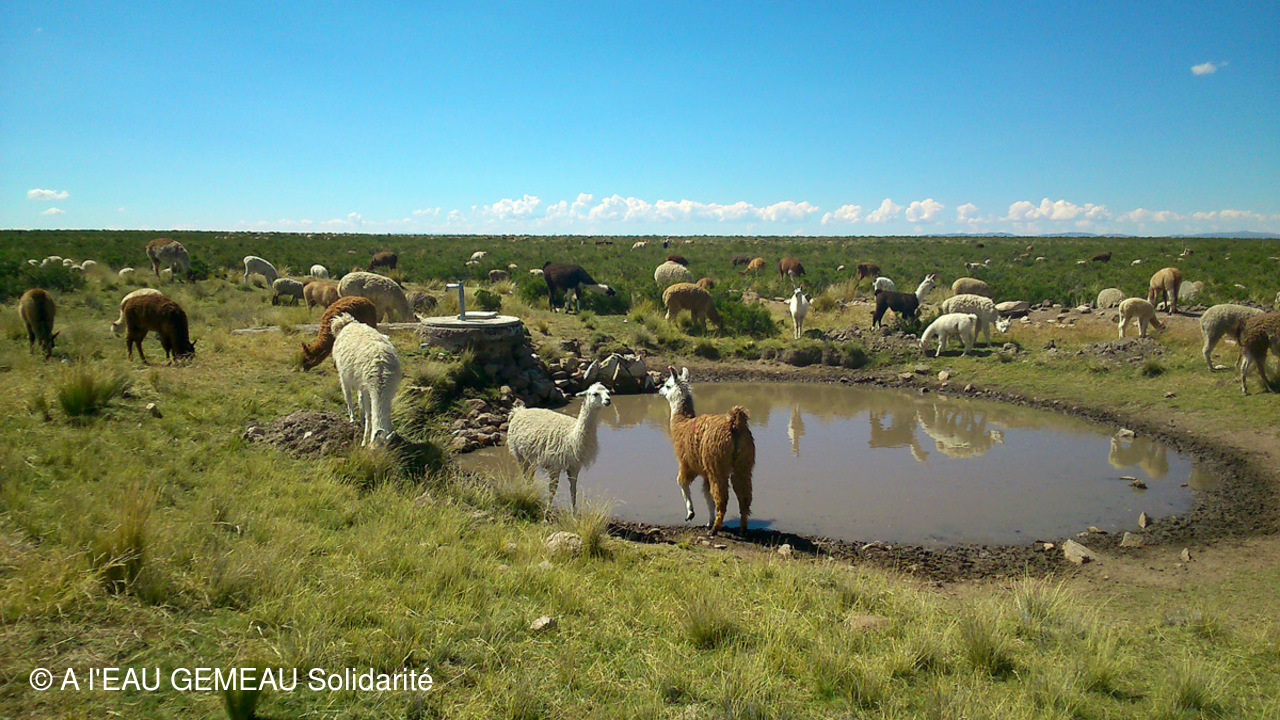 -Les dernières photos prises en saison sèche: les points d'eau permettant aux troupeaux d'alpagas de s'abreuver, des lavandières autour d'un mince filet d'eau, un passage à gué...à sec, l'état de sécheresse de la terre, un troupeau de vigognes sur l'Altiplano...