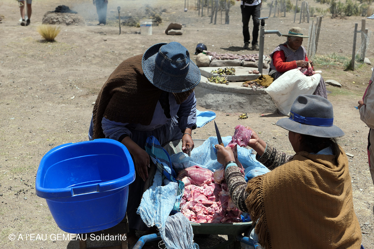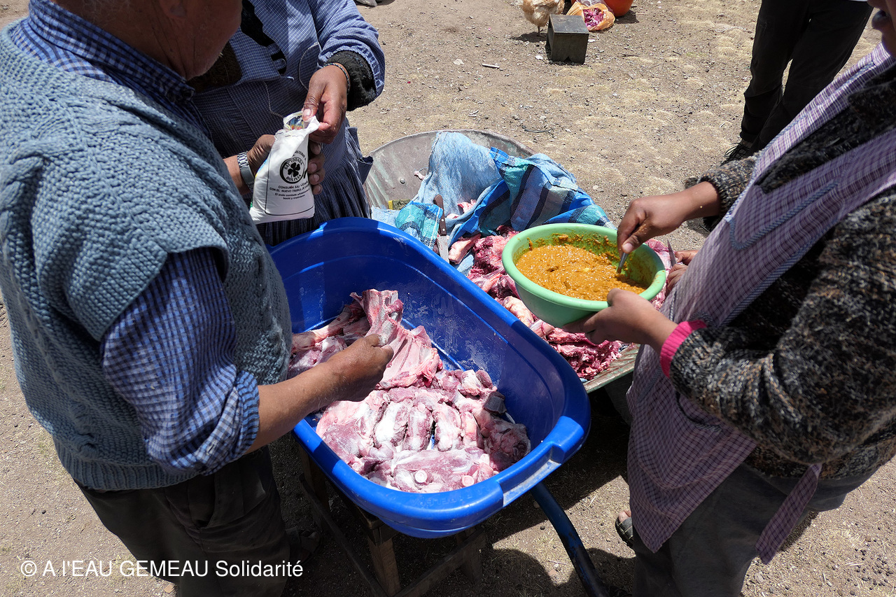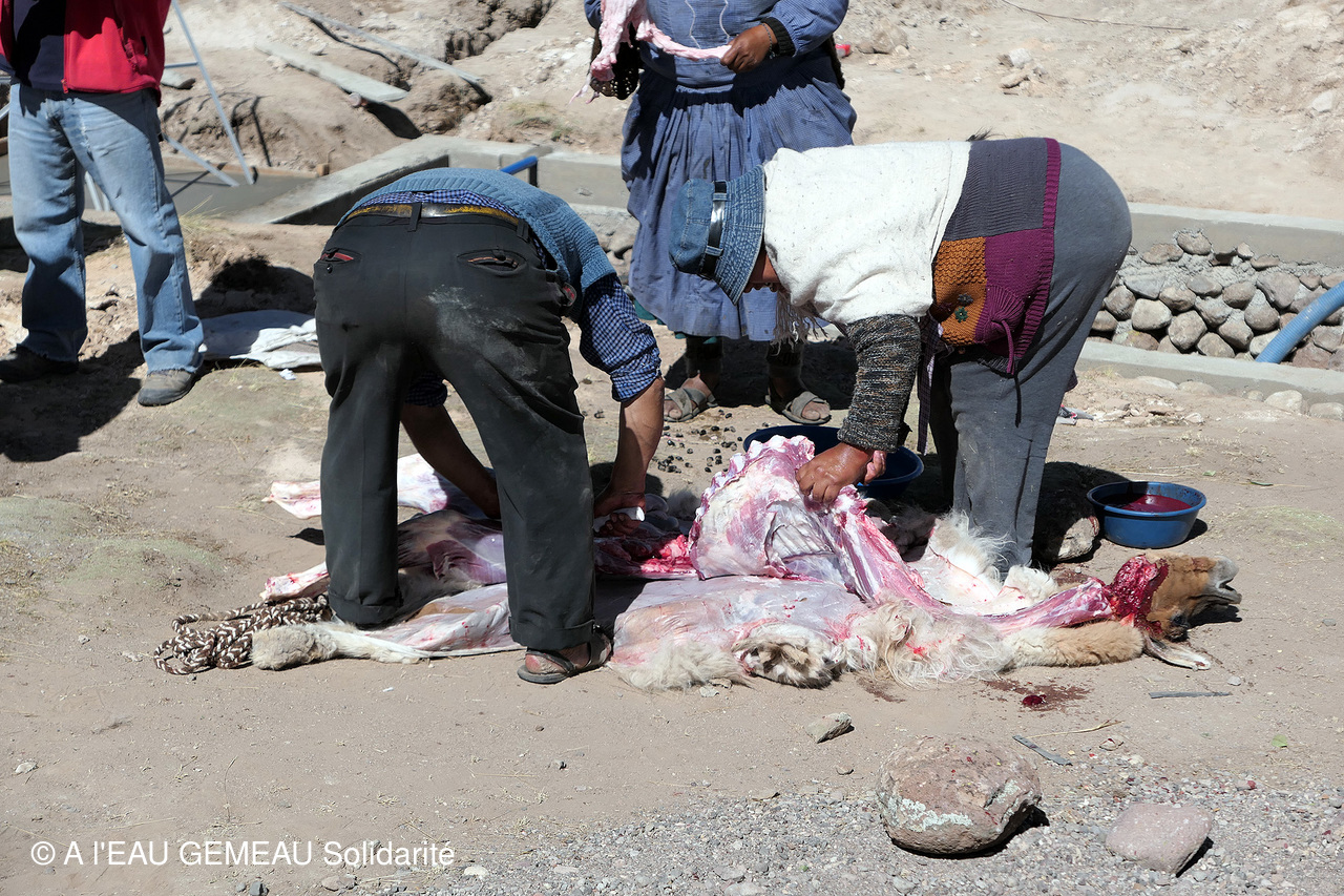 - Et pour remercier le groupe venu de France, les familles d'éleveurs de la communauté sacrifient un lama et le préparent de manière traditionnelle avec papas, bananes, ail pilé et épices...