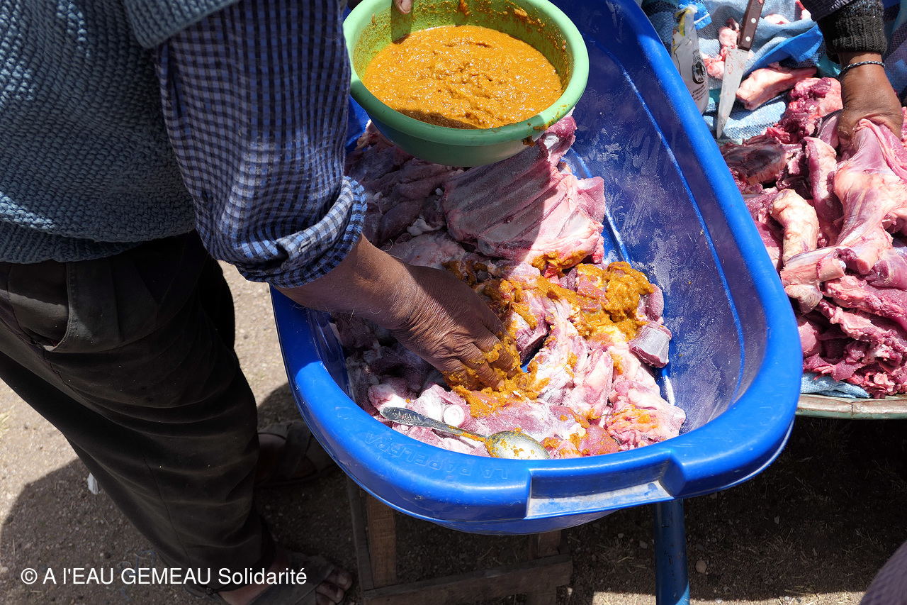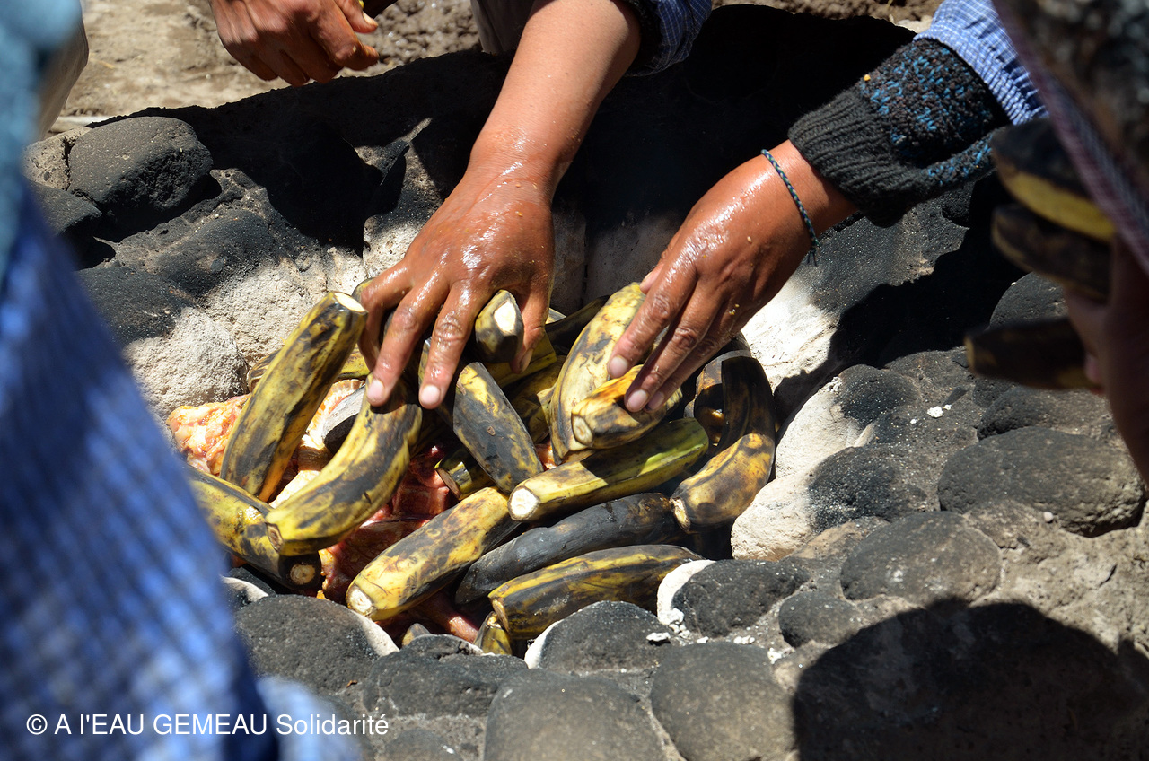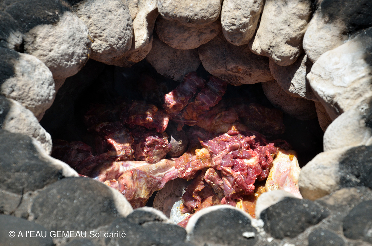 - Et pour remercier le groupe venu de France, les familles d'éleveurs de la communauté sacrifient un lama et le préparent de manière traditionnelle avec papas, bananes, ail pilé et épices...