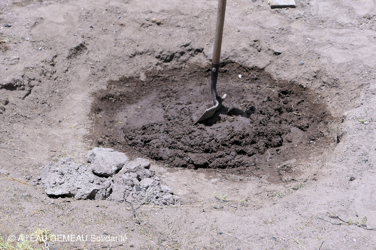 Les grandes dalles de béton pour recouvrir le premier puit du réseau de Limani sont également terminées et leur pose est effectuée à la main!