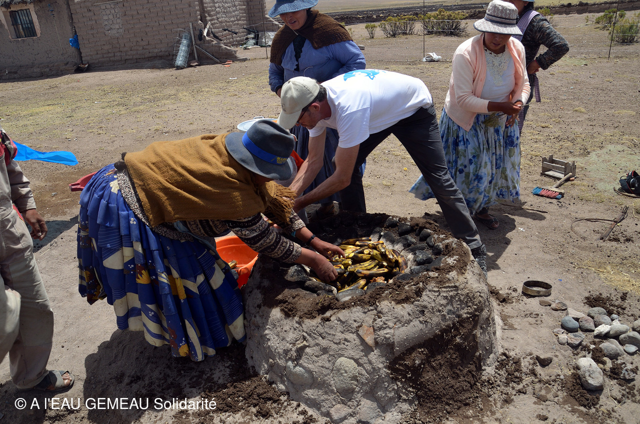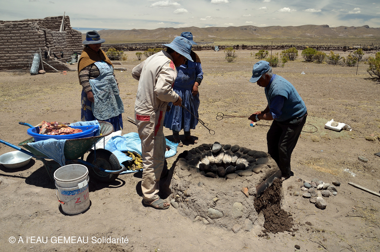 Le tout est cuit dans le four d'une des fermes et après la dégustation de cet excellent repas, la journée se termine avec les discours du Maire de Santiago de Machaca, du Chef coutumier de la communauté des éleveurs, et une remise de cadeaux ...mais aussi avec beaucoup d'émotion!