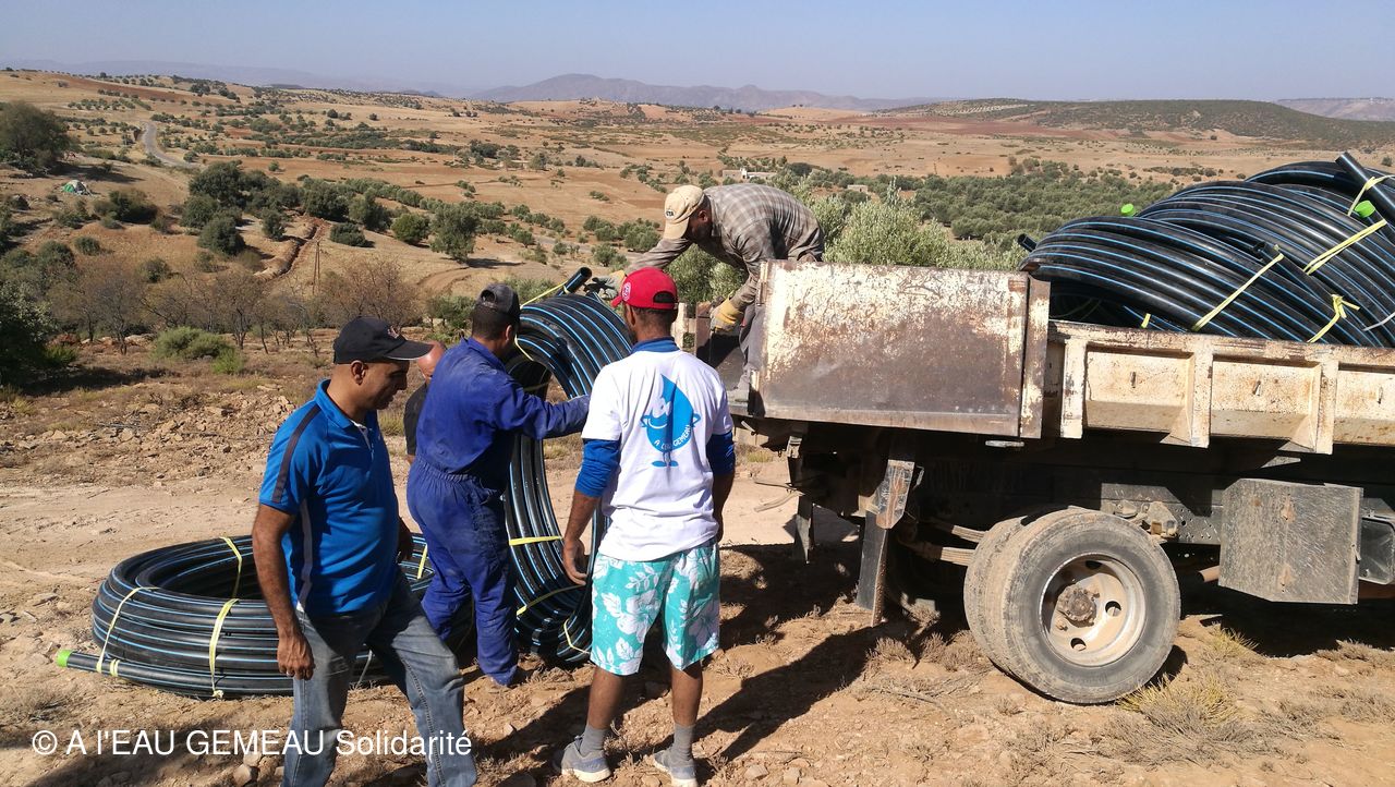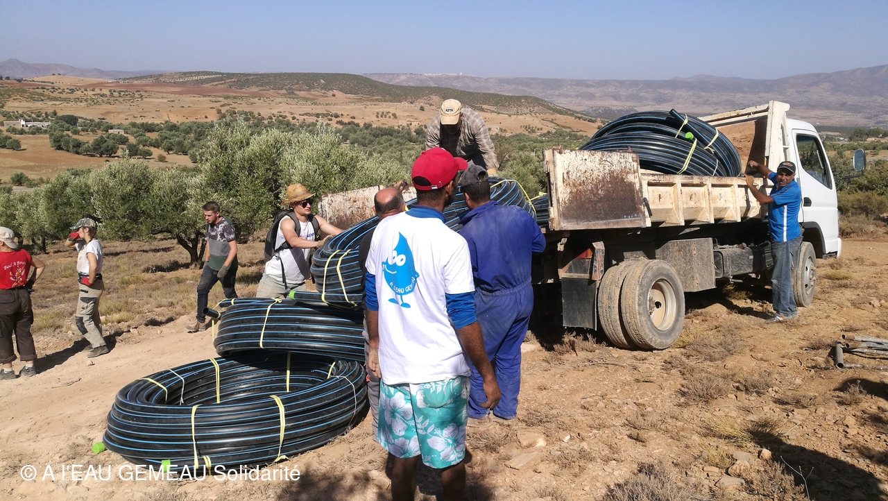 2019-10-08: livraison des tuyaux en PEHD et accessoires...le chantier se précise!