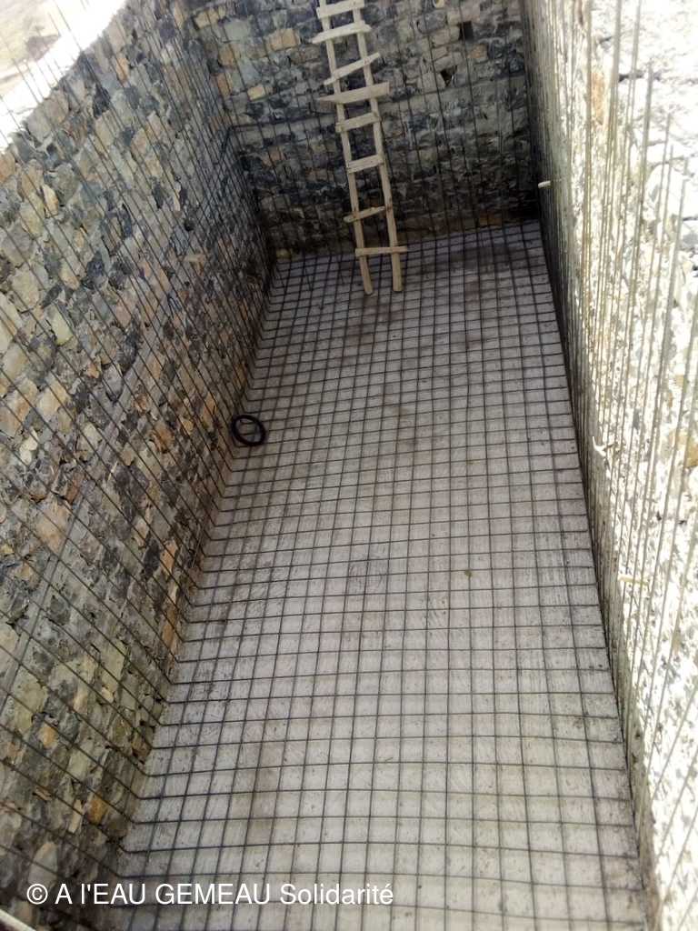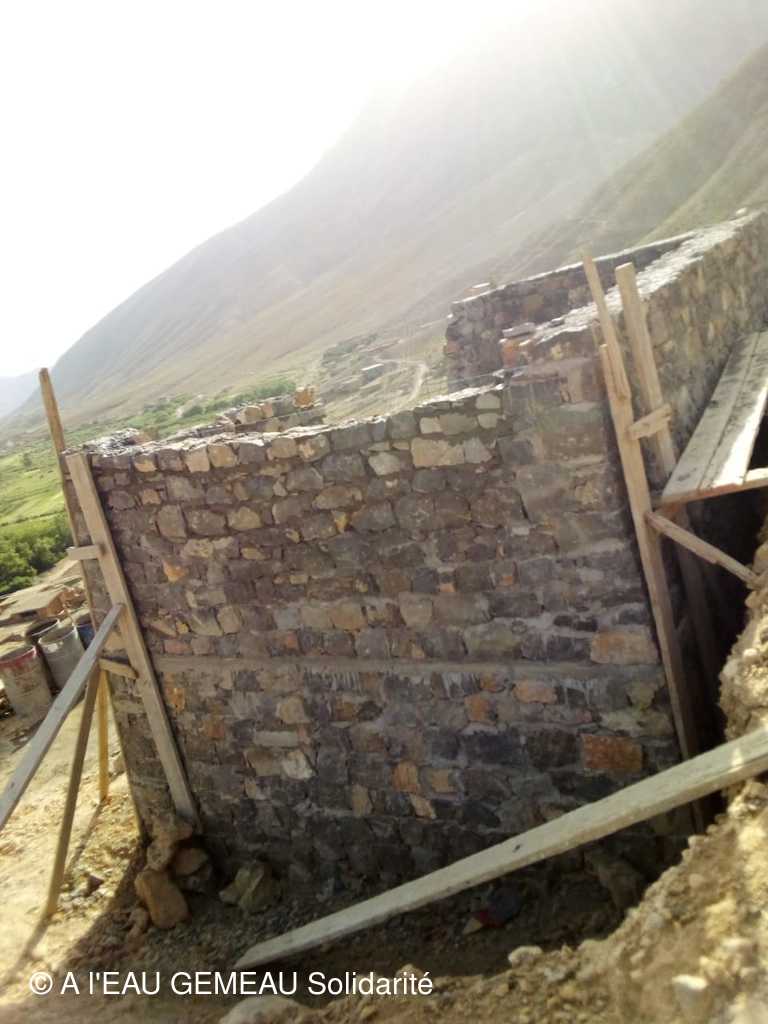 - Début juin: reprise des travaux. Le réservoir sort peu à peu de terre, maçonné en pierres du pays.