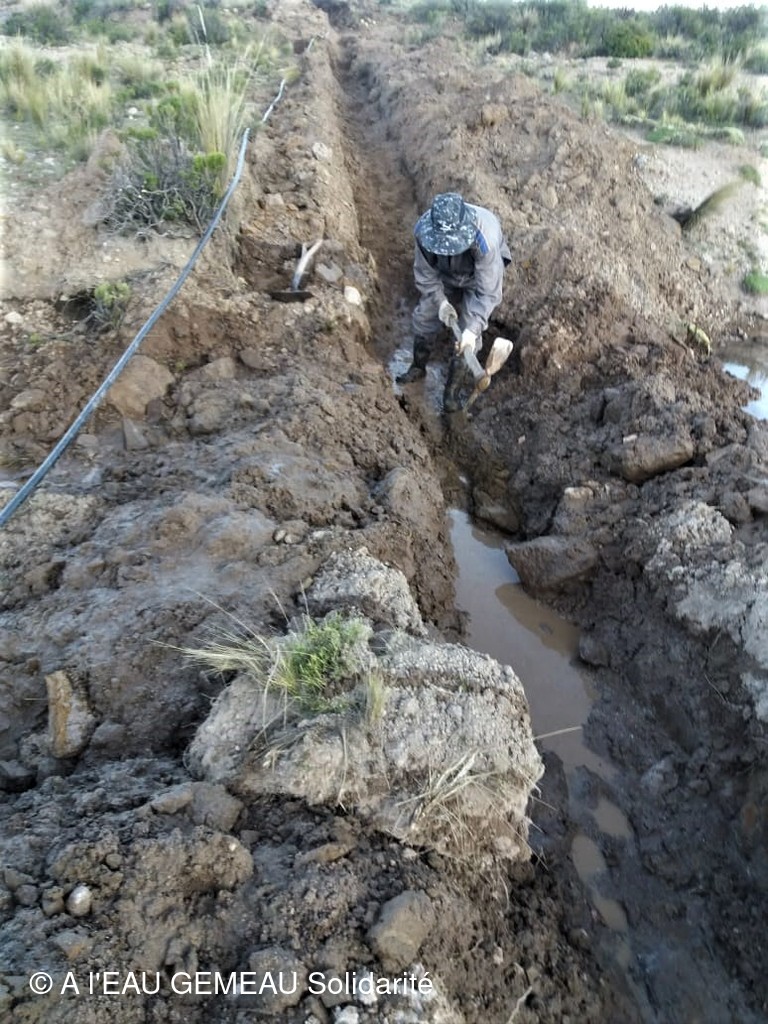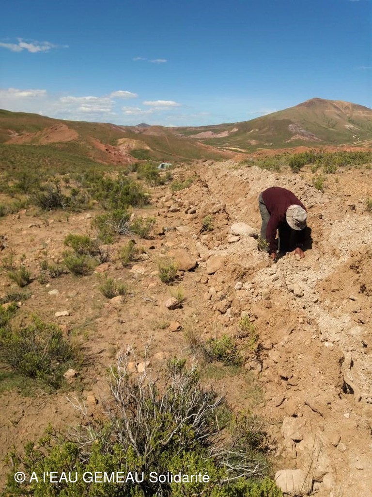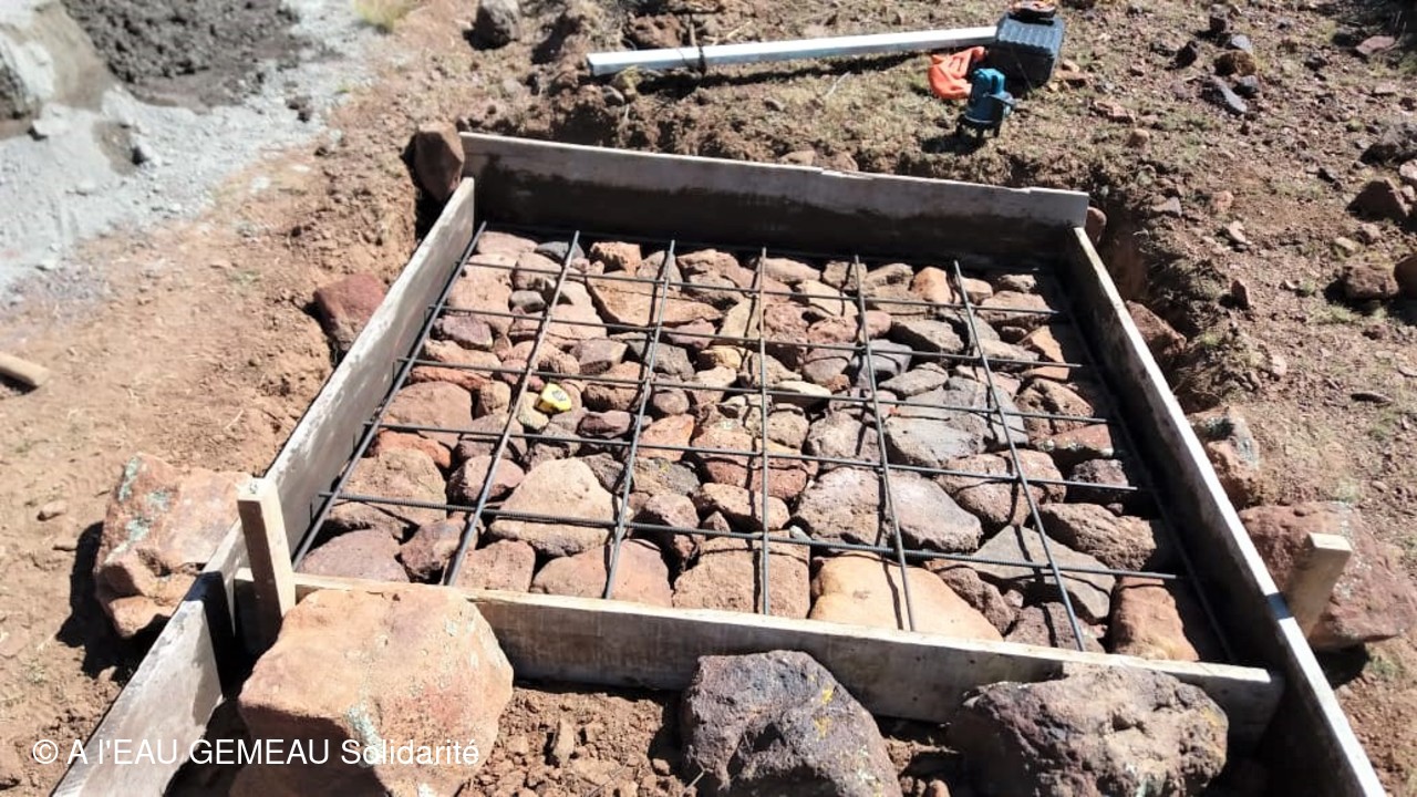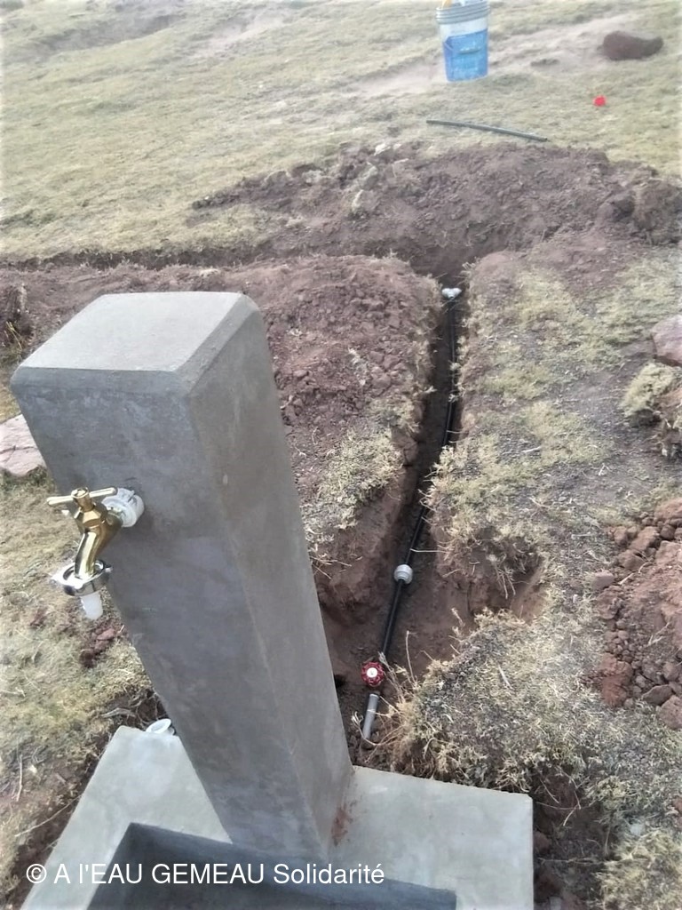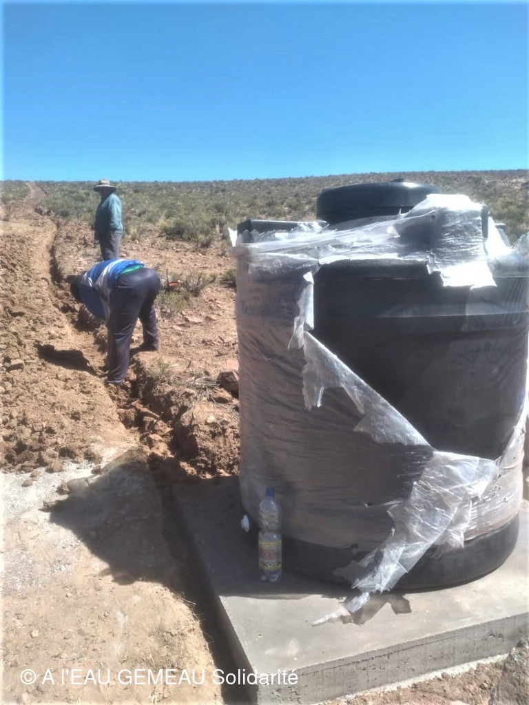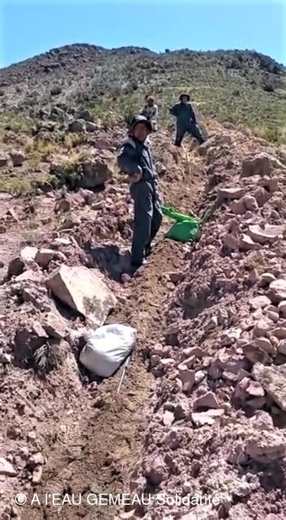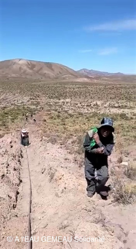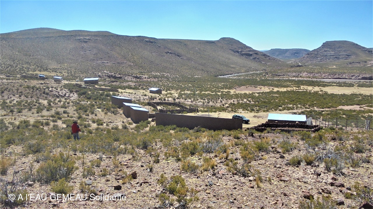 Mai 2022: la construction des griffos (borne fontaine locale) et des abreuvoirs pour les lamas est lancée.
