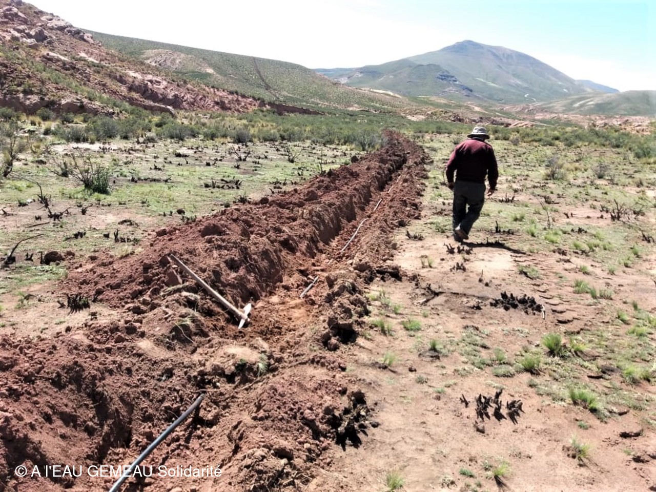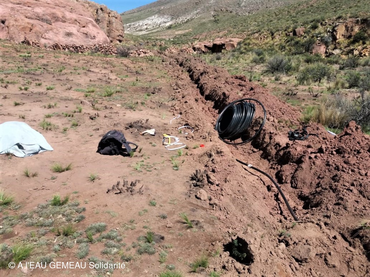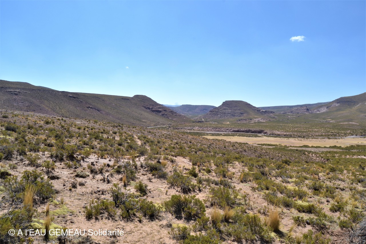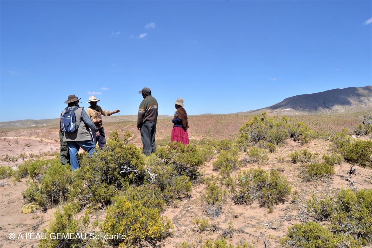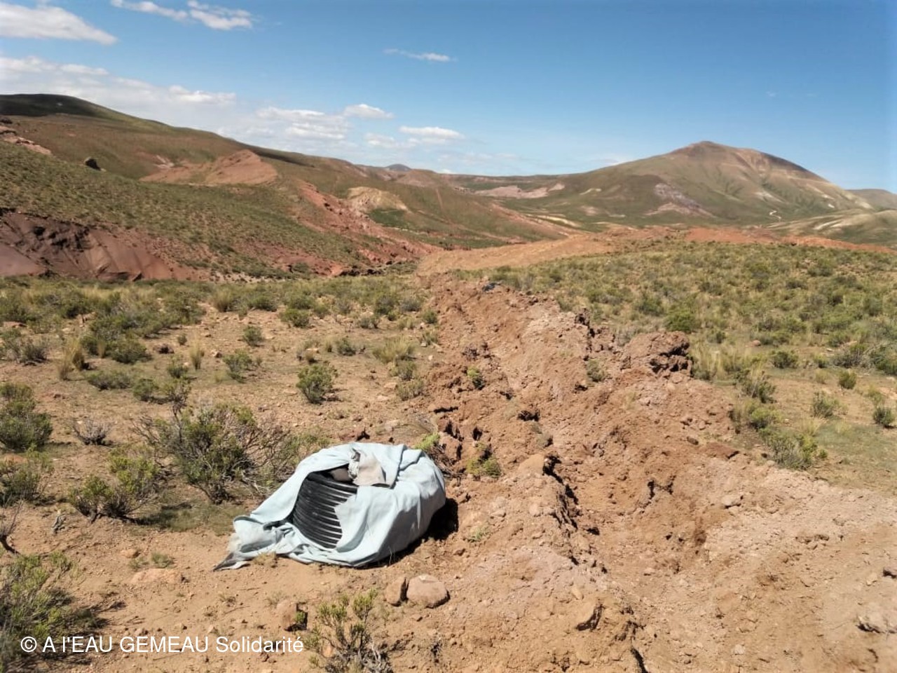 Mai 2022: la construction des griffos (borne fontaine locale) et des abreuvoirs pour les lamas est lancée.