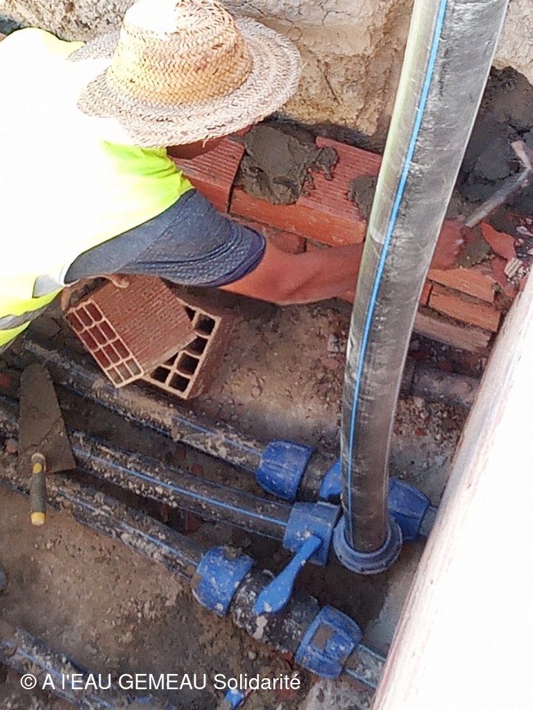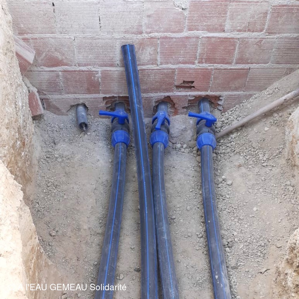 Janvier 2025: le raccordement des maisons est en cours avec la pose des compteurs d'eau.