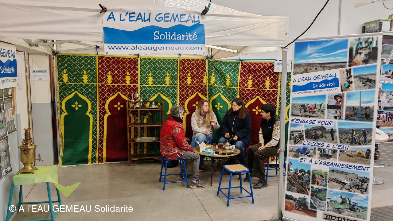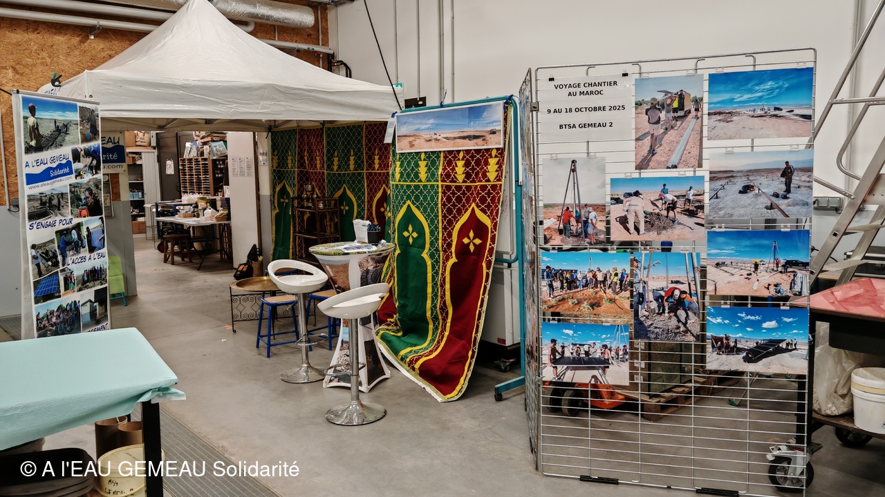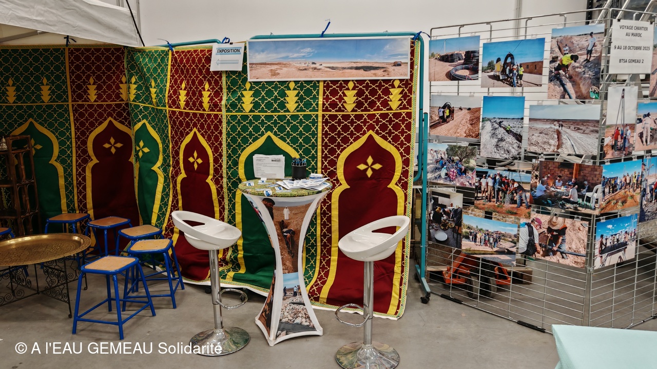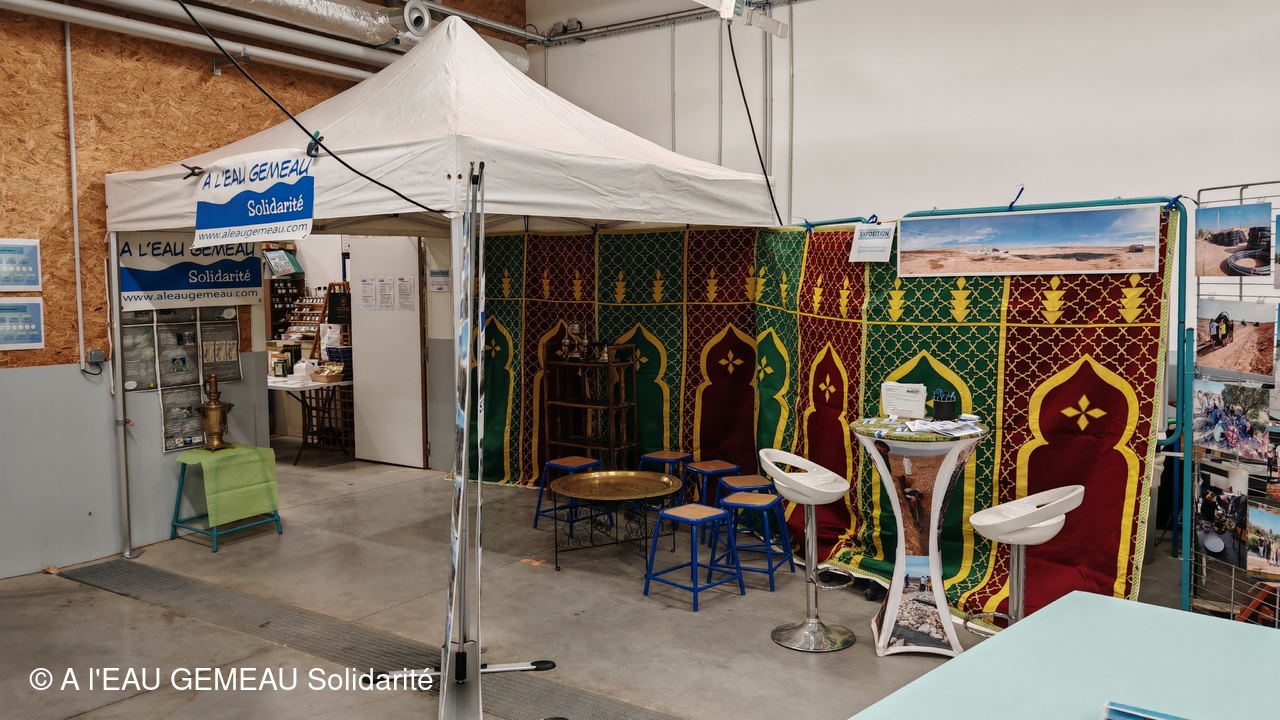 Situé pour la première fois au P3E le bâtiment consacré aux formations sur l'eau et en accord avec les projets d'adduction d'eau menés en zone rurale au Maroc, l'association a mis son stand aux couleurs du Maroc.